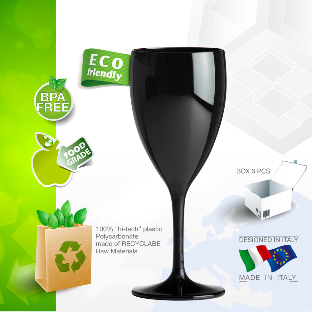 Black polycarbonate wine glass 34 cl.