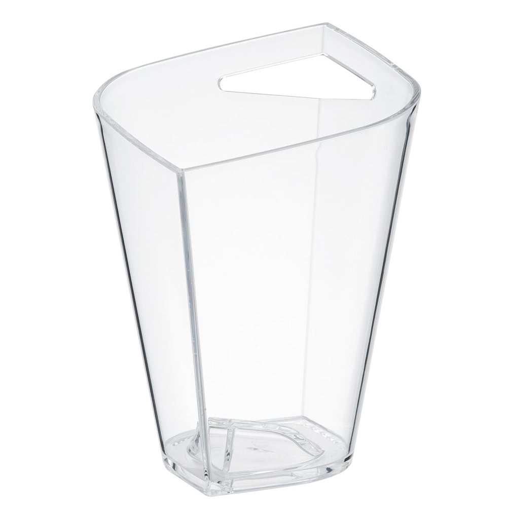 Bottle cooler with rounded shapes, characterized by pointed lines with a wider upper opening. The outer edge improves brightness and thickness. The Tulip bottle cage bucket is ideal for exposing and refreshing a bottle of sparkling wine or wine. Transparency makes it possible to identify the exhibited products and their labels.